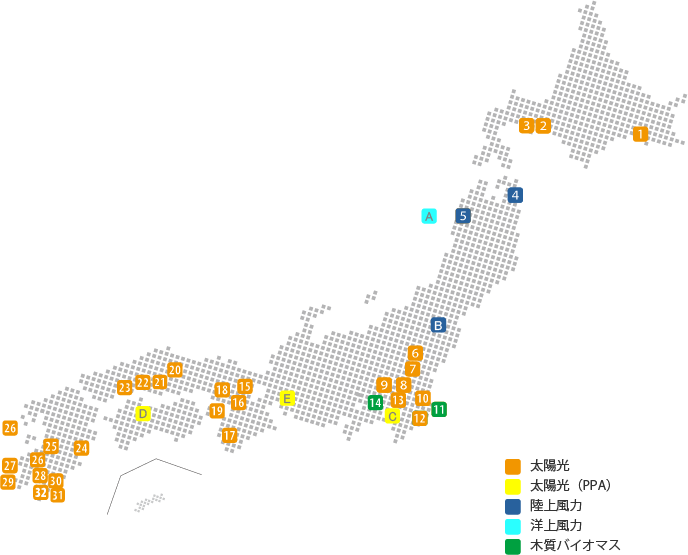 大林クリーンエナジーの太陽光発電所は31ヵ所、風力発電所は4ヵ所、